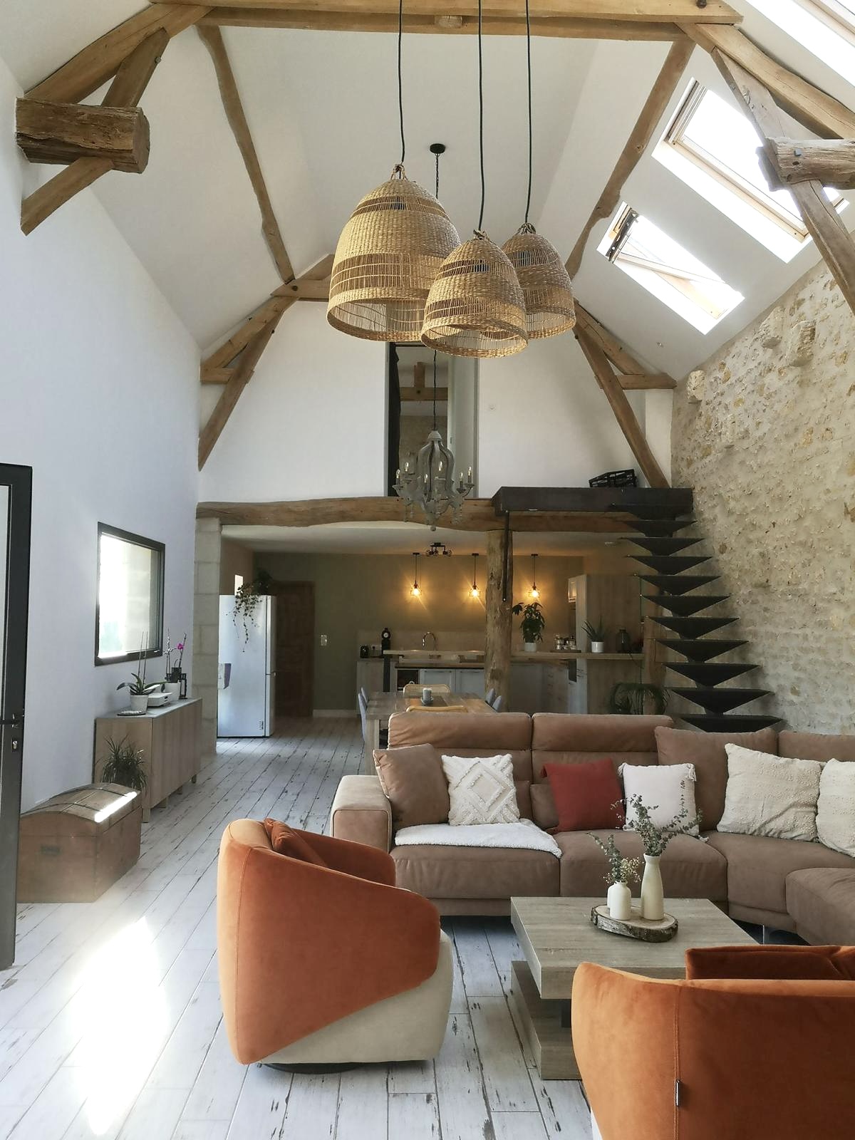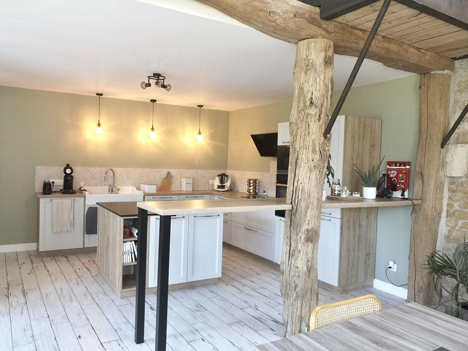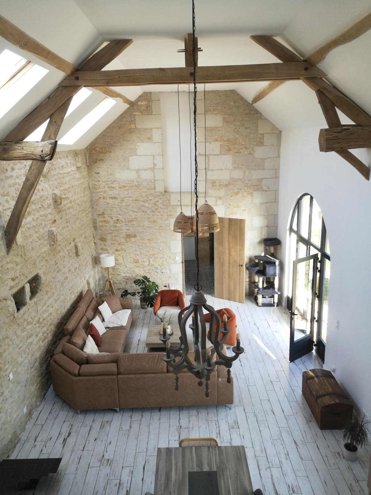 À la campagne, rénovation de qualité pour cette maison ancienne de 200m² habitables, offrant une grande pièce de vie lumineuse de 70m², avec une belle hauteur sous plafond ouverte sur la cuisine aménagée, une chambre avec salle d’eau privative. À l’étage, 3 chambres, salle d’eau, wc. Chauffage au sol par pompe à chaleur. Préau, dépendance, abri, sur 7710m² de terrain.