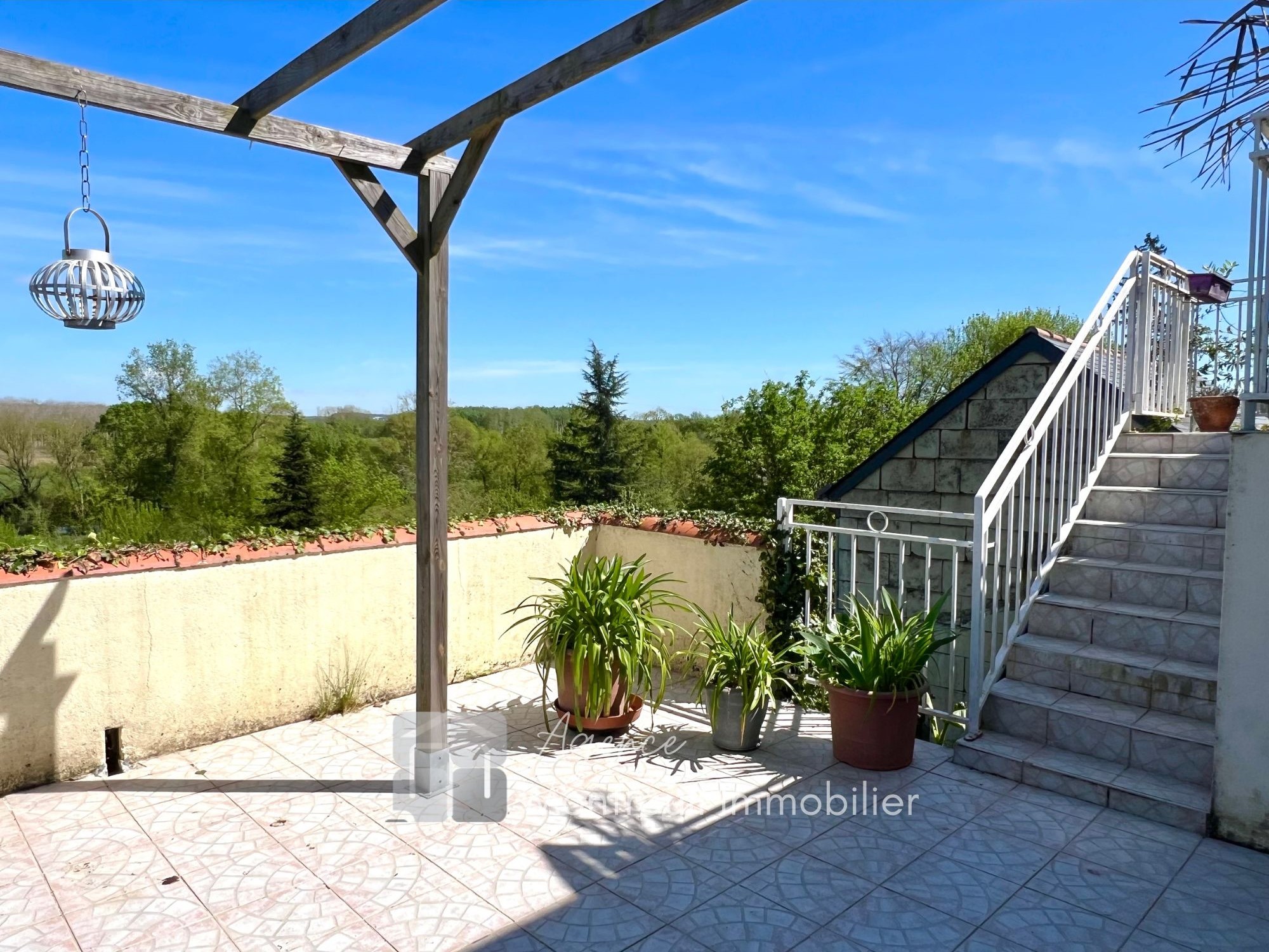 Une vue imprenable sur la campagne pour cette belle maison de 130m² habitables offrant au rez-de-chaussée, entrée, cuisine aménagée ouverte sur le séjour, salon avec poutres et cheminée, bureau, salle de bains, wc. À l’étage, palier, 3 chambres, salle d’eau-wc. Sous-sol avec 2 pièces, et chaufferie. Garage, dépendance, terrasse. L’ensemble sur 980m² de terrain paysagé.