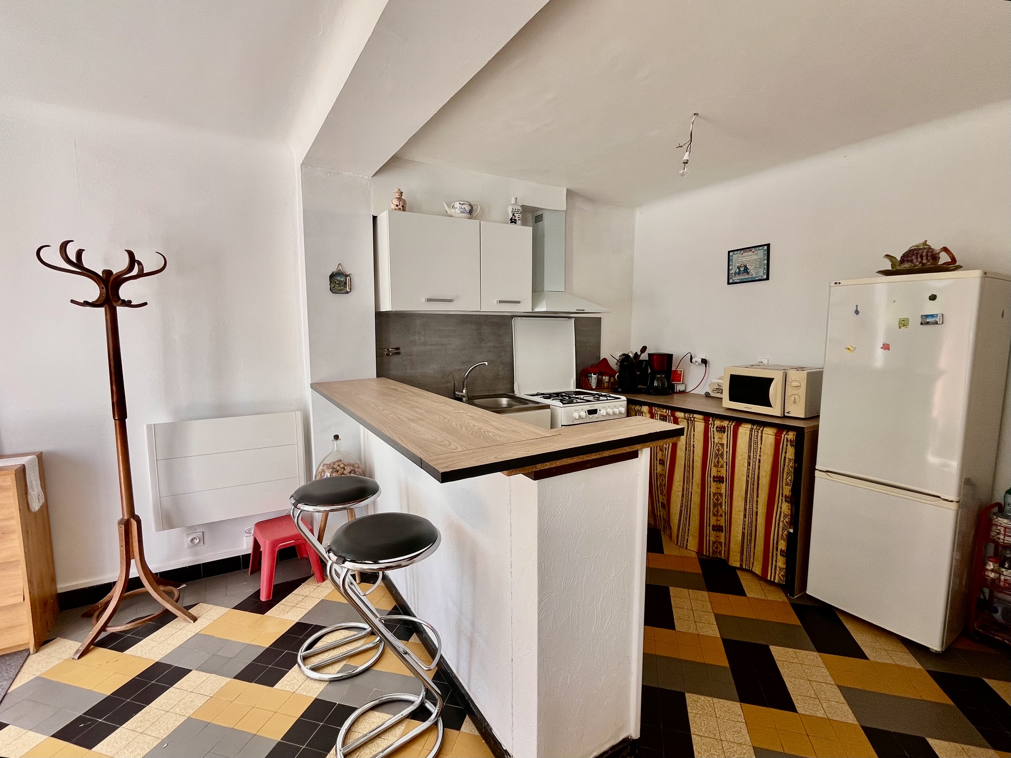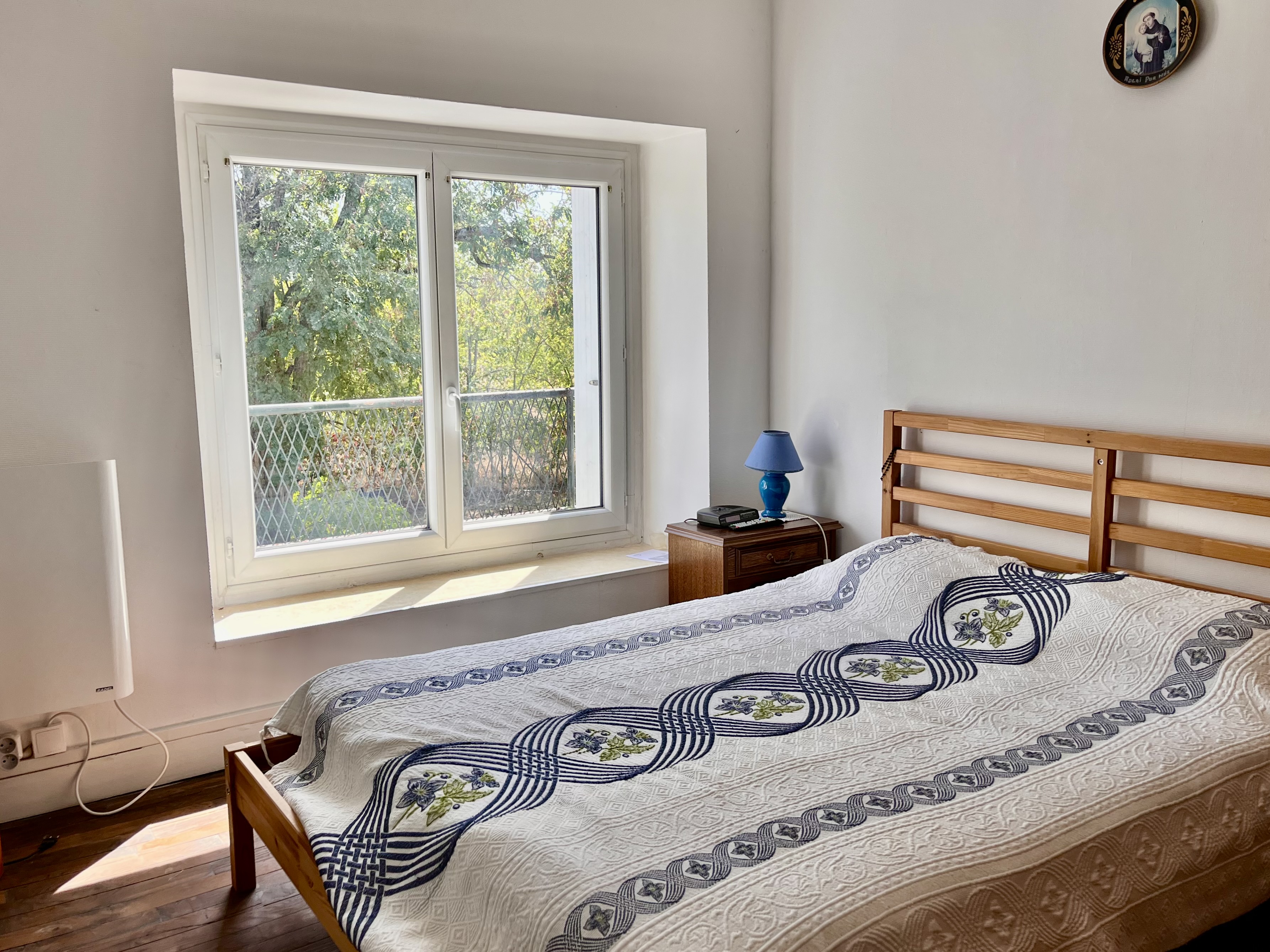 La maison principale propose un séjour lumineux orienté SUD EST et une cuisine ouverte chauffée par un insert bois. A l’étage, 2 chambres dont une de 15m2 et 10m2 avec placard et une salle d’eau avec toilettes.