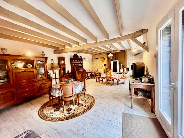 Le rez-de-chaussée comprend une entrée, un séjour/salle à manger de 45 m² avec poêle à granulés orienté SUD, une cuisine aménagée et équipée, une chambre lumineuse, une salle de bain avec WC et une buanderie. À l'étage, vous trouverez deux chambres et un bureau. La maison s'ouvre principalement sur une cour paysagée pavée de travertin et sur un jardin offrant une vue sur la campagne. L'ensemble est complété par une chaufferie, un atelier, une pergola, un petit préau et un puits. Nous apprécions particulièrement cette maison pour : - Sa proximité immédiate avec l'école du village. - Son excellent confort thermique (poêle à pellets 2017, huisseries double vitrage 2021, pompe à chaleur Air/Eau et bardage extérieur 2023). - Son côté pratique (volets roulants solaires, portail électrique et borne électrique, le tout installé en 2023). - Sa faible consommation électrique et son autonomie partielle (réfection de la toiture, pose de 12 panneaux photovoltaïques le tout installé en 2024. - Sa quasi-autonomie en eau (puits et pompe de relevage installée en 2024). - Sa taxe foncière 2025 de 516 € ( presque annulée par la revente de l'électricité produite ). PRIX DE VENTE : 178 500 € HAI dont 8 500 € d'honoraires, charge acquéreur (pour une fiscalité plus douce). À ces honoraires s'ajoutent les frais de rédaction d'actes d'un montant de 240 € TTC à la charge de l'acquéreur. Les informations sur les risques auxquels ce bien est exposé sont disponibles sur le site Géorisques : www.georisques.gouv.fr