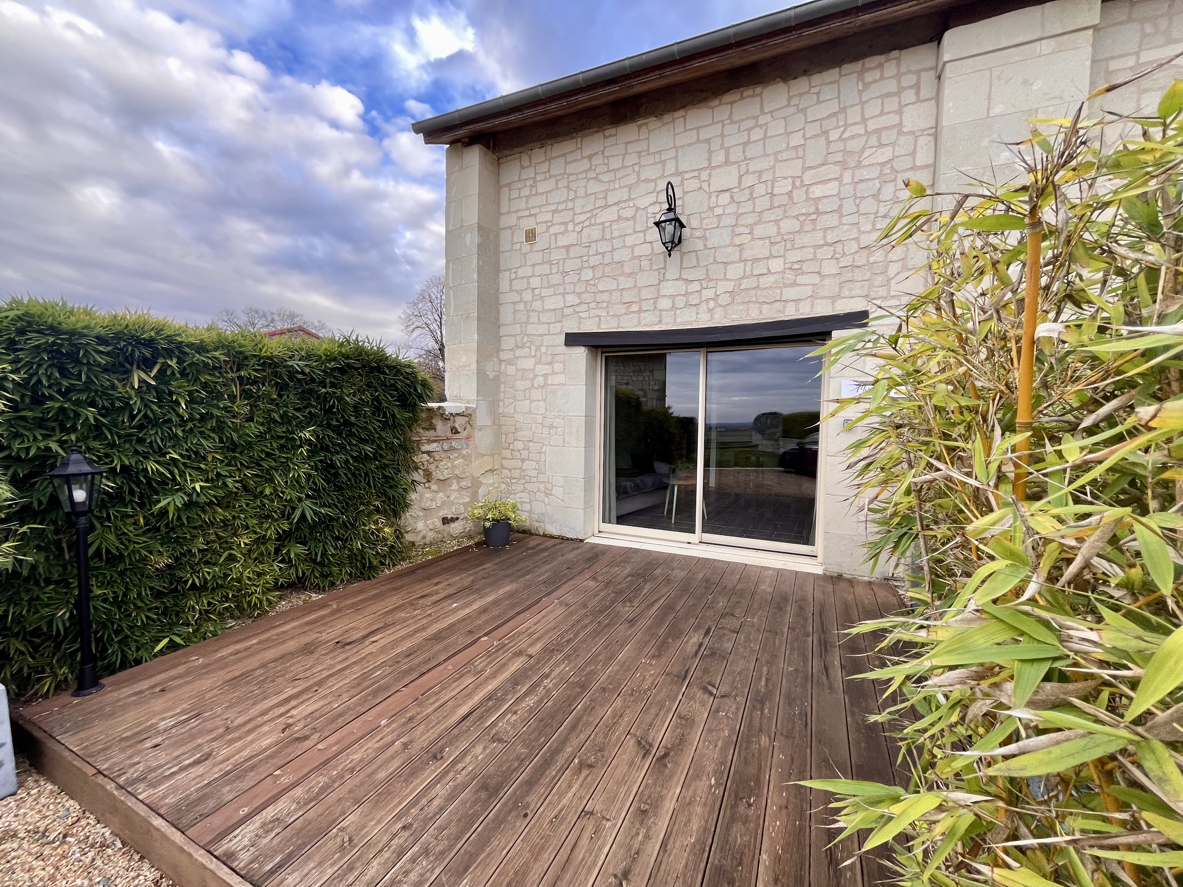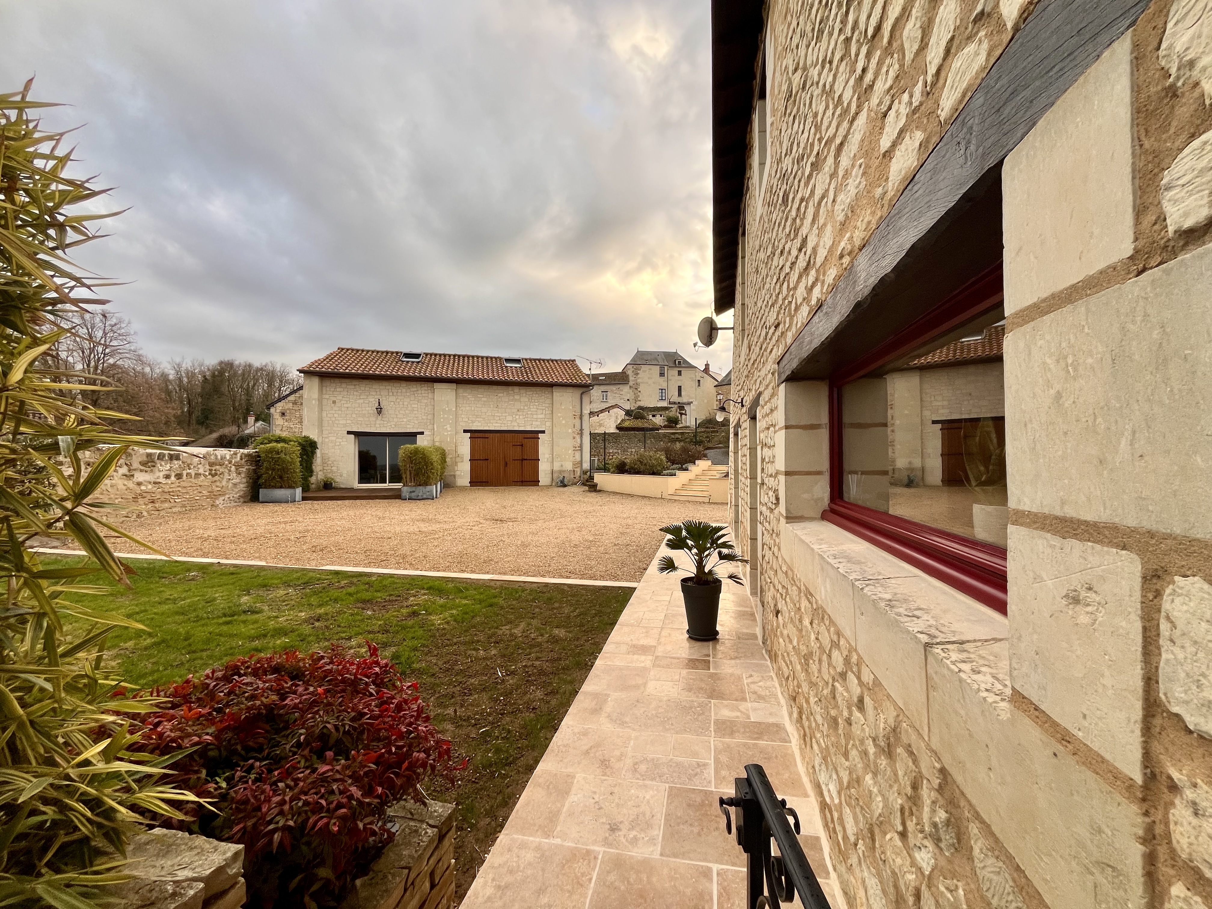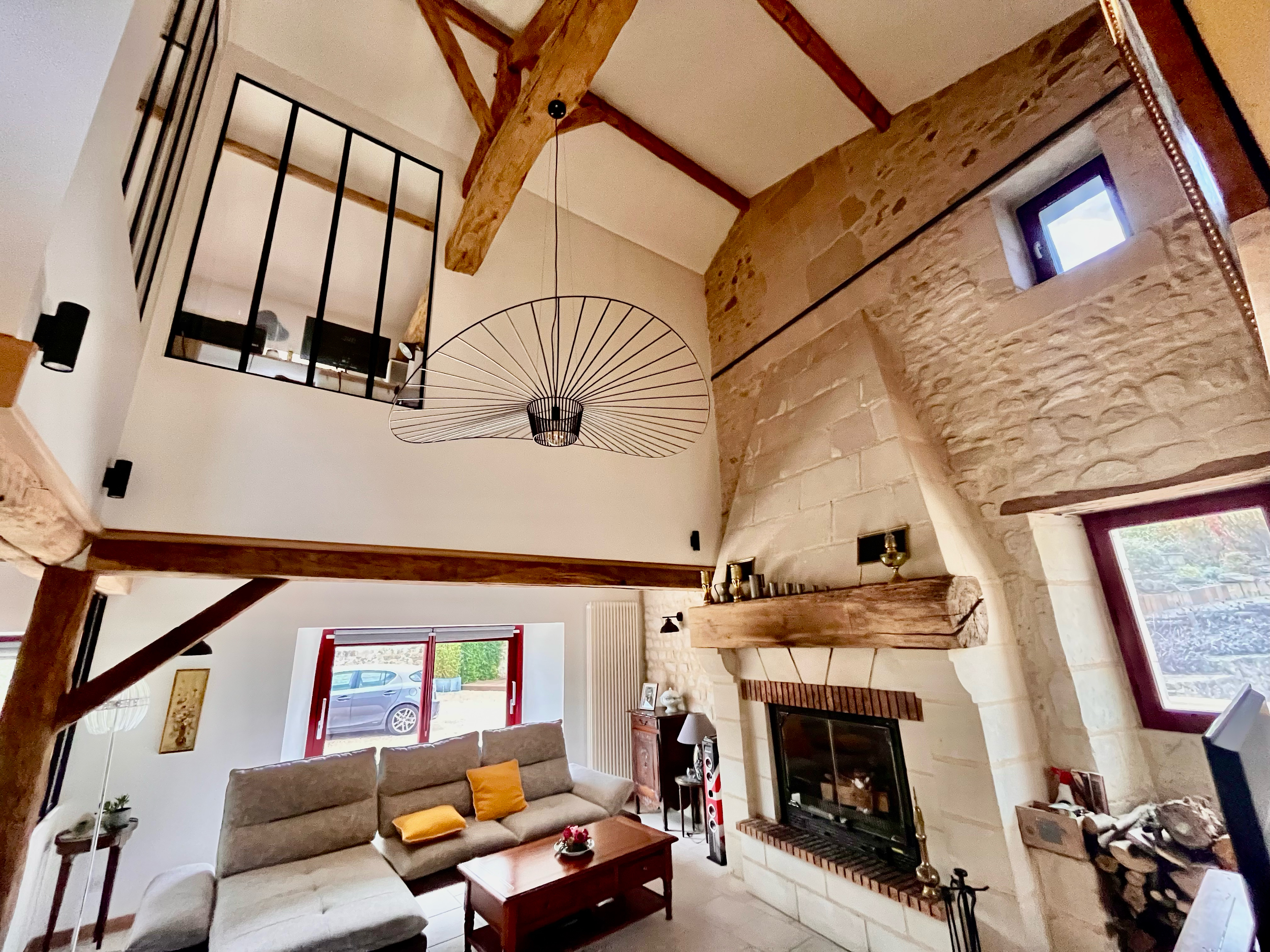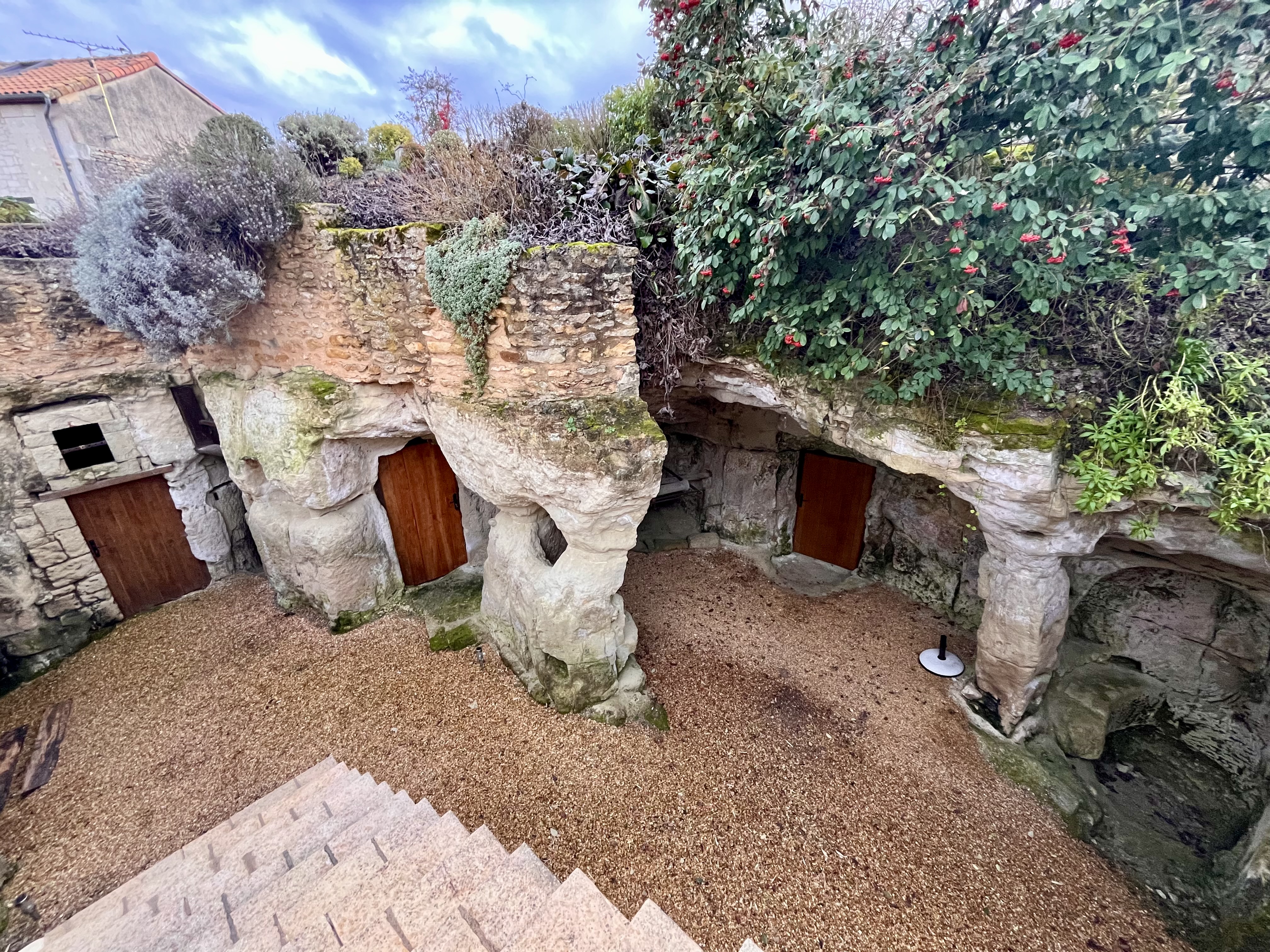 Située entre Montreuil-Bellay, Thouars et Saumur, au cœur d'un charmant village, venez découvrir cette propriété de caractère faite de tuffeau et de moellon, entièrement rénovée sur un terrain de 1 400 m², comprenant une maison principale de 138 m2, deux dépendances aménagées en gîtes de 50 m2 environ chacun et des caves troglodytes en parfait état. Alliant le cachet de l'ancien au confort moderne, cette demeure offre un excellent confort thermique, une luminosité exceptionnelle grâce à ses nombreuses verrières et une vue dominante et imprenable. Le rez-de-jardin s'articule comme suit : - À droite : un coin lecture et une cuisine américaine ouverte sur une salle à manger triple exposition, donnant accès à une terrasse dominante. - À gauche : un salon cathédrale spacieux avec une grande cheminée. - En face de l’entrée : un vestiaire et un escalier design en bois et acier menant à l'étage. À l'étage, une mezzanine surplombant le séjour dessert une suite parentale cathédrale avec bureau et penderie, une salle de bain attenante, deux chambres avec placards, une salle d’eau et des toilettes séparées avec lave-mains. L’extérieur dispose de deux gîtes indépendants comprenant chacun un séjour, une cuisine américaine et une chambre sous combles. Le premier est équipé d'une climatisation réversible et le second de convecteurs électriques. Une magnifique salle de réception troglodytique, un garage fermé avec un grenier aménageable, un atelier et un puits complètent l'ensemble. Le jardin paysager et sa terrasse en travertin constituent un véritable écrin pour cette demeure qui ne vous laissera pas insensible. Prix HAI : 451 500€ dont 21 500€ d'honoraires à la charge de l'acquéreur. DPE : D (204) / GES : D (35) Taxe foncière 2025 : 1 244 € À ces honoraires s'ajoutent les frais de rédaction d'actes d'un montant de 240 € TTC à la charge de l'acquéreur. Les informations sur les risques auxquels ce bien est exposé sont disponibles sur le site Géorisques : www.georisques.gouv.fr.